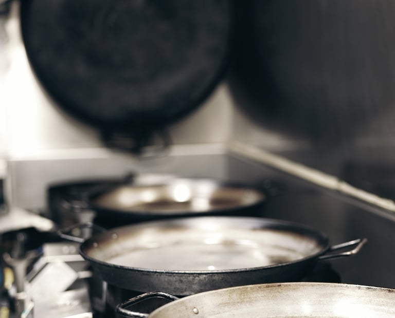 Reforma integral de los diferentes espacios, adaptándonos a las nuevas necesidades operativas del cliente. Destaca la bancada monobloque para elaboración de paellas, fabricada en acero de 3 mm de espesor, garantizando resistencia, limpieza y durabilidad.