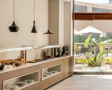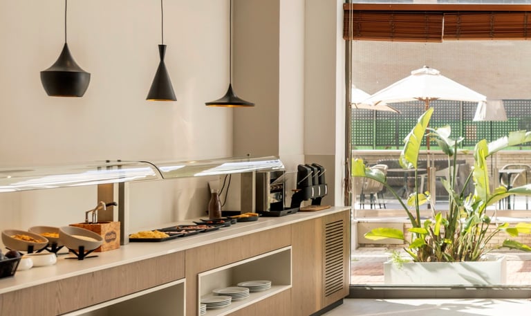 Implantación de equipamiento en cafetería, diseñada para ofrecer un servicio rápido, funcional y visualmente atractivo para el alumnado.
